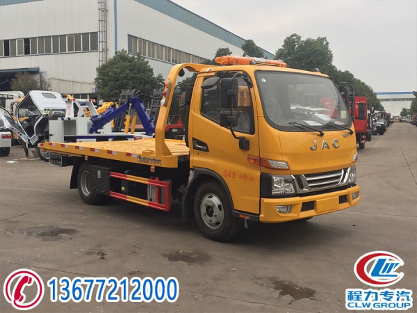江淮骏铃V5蓝牌平板一拖二清障车:采用1900mm新款V5驾驶室,宽敞舒适,标配日间行车灯,多功能方向盘,原厂空调,气压制动,7.00R16钢丝胎,方向助力,中控锁,电动窗,后视镜加热,定速巡航,五十铃120马力国五发动机,六安五档变速箱。上装为平板一拖二型:尺寸为4200X2300mm,尾板可选伸缩式、翻转式或一体式三种,平板采用全新技术和工艺,一次性带孔冲压板(可选花纹板),配置一个4吨绞盘,21米钢丝绳,一个2.5吨后拖臂,七字叉一对,**小车一对,捆绑带4根,工作灯一对,工具箱一个!